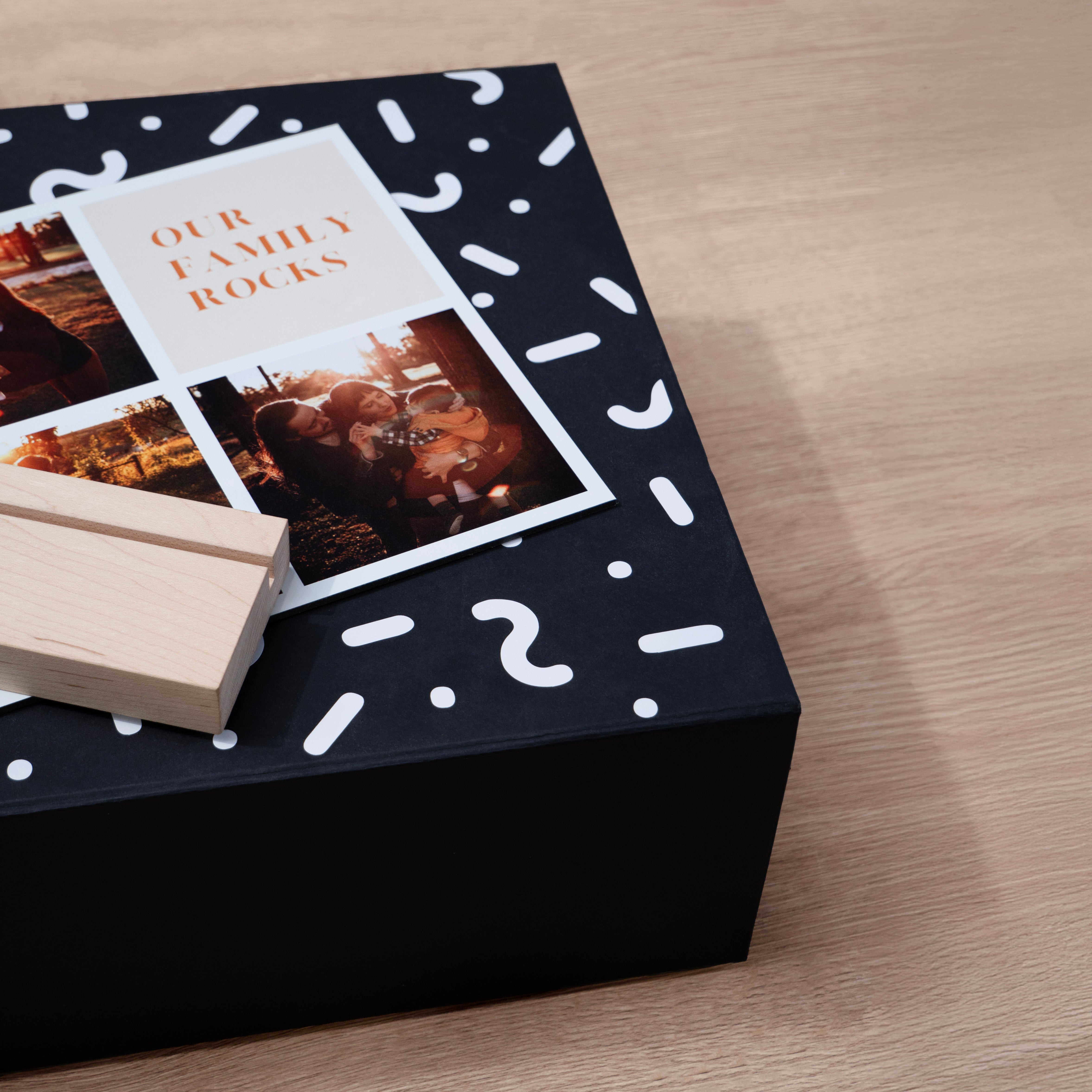 De Giftbox is een elegante fotocollage (20 × 20 cm) op hoogwaardig materiaal, geleverd in een stijlvolle geschenkverpakking. Klaar om meteen cadeau te geven – persoonlijker wordt het niet.