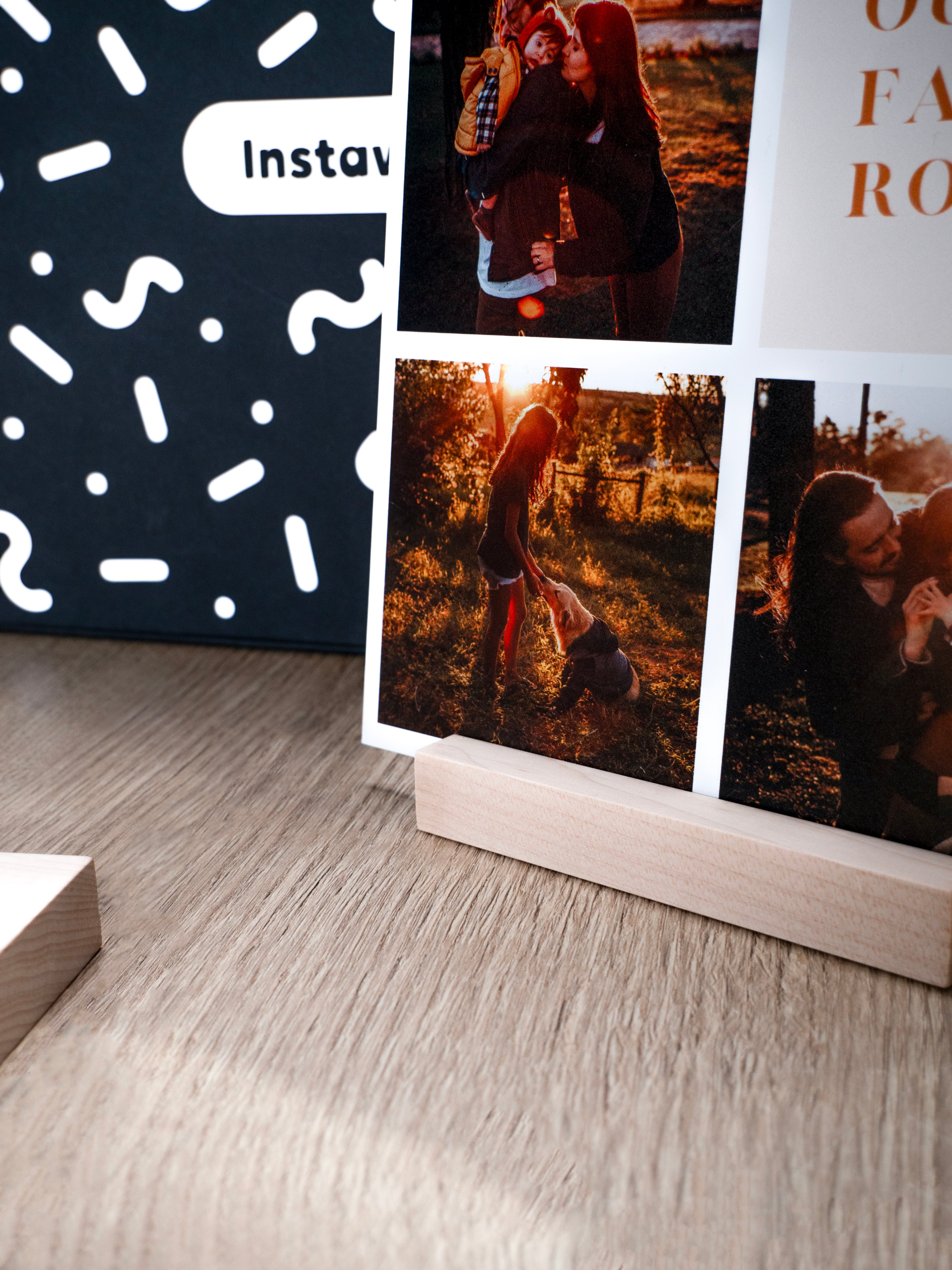 Het bijpassende houten blok van massief esdoornhout biedt een elegante manier om de Instawall op te zetten – zonder te boren of te hangen. Met zijn strakke vorm en warme uitstraling past hij in elk interieur. Gewoon plaatsen, opzetten, klaar.