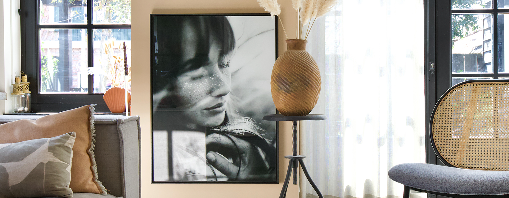 Je kunt een print op aluminium laten inlijsten met een baklijst als je houdt van een matte, industriële uitstraling. Of kies voor een baklijst met een print op plexiglas als je juist wilt dat de kleuren van je muur spatten.