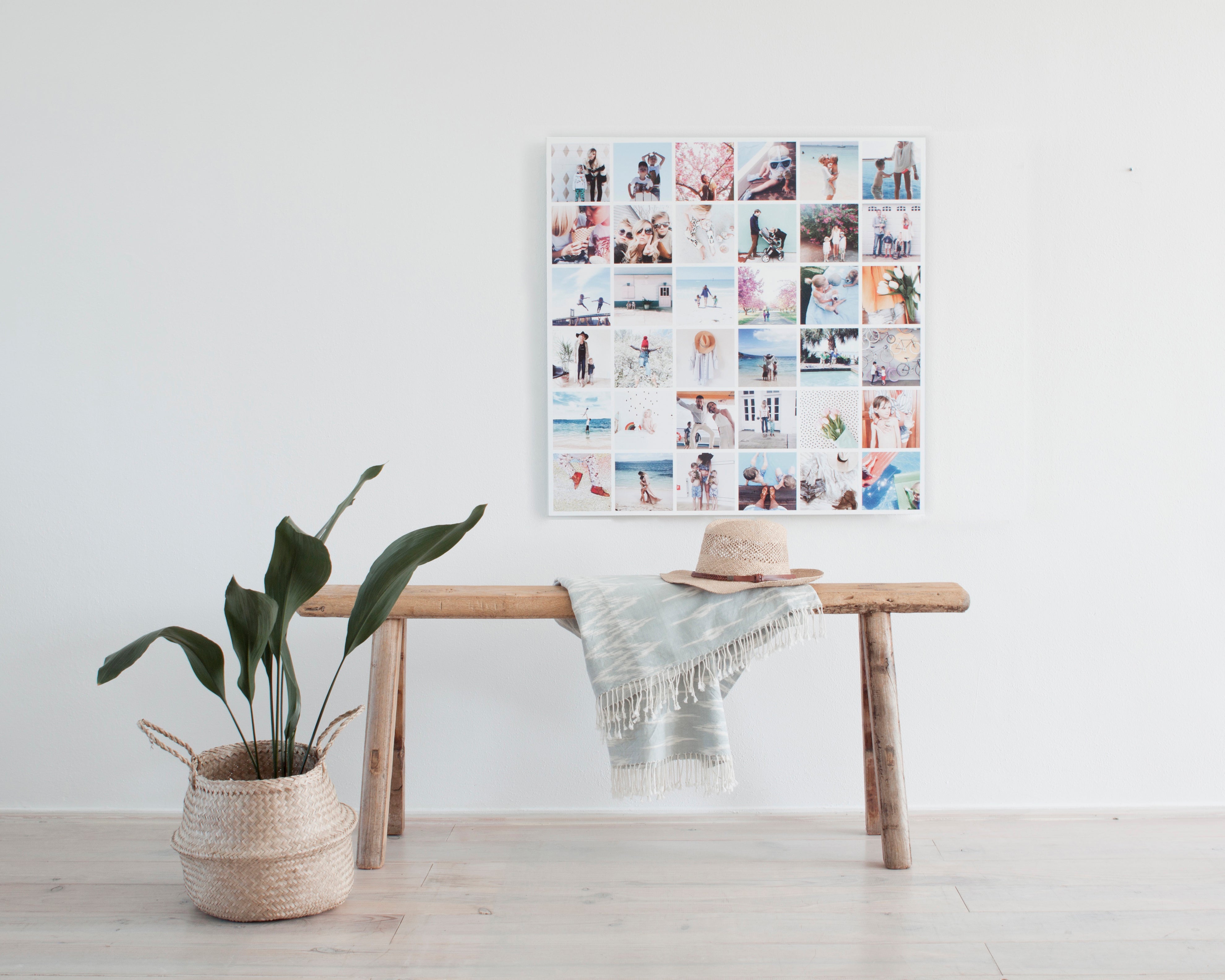 Smalle muur? Kies een verticale Instawall. Hang ‘m op zo’n 145 cm van de vloer tot het midden van je decoratie. Gebruik je meerdere kleine Instawalls? Hou dan 5-15 cm tussenruimte voor een strakke look.